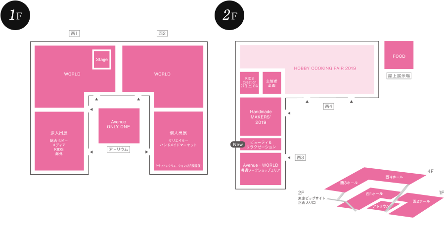 Avenue Only Oneゾーン/WORLDゾーン/法人出展ゾーン/クラフトレクリエーション/KIDS Creation※/ビューティ&リラクゼーション