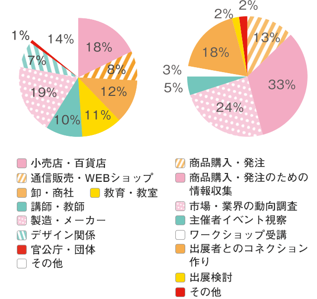今や、世界最大級となりましたこのハンドメイドイベントには、毎回14万人を超える愛好者に加え、ビジネス関連の方も5,000人以上が来場されます。