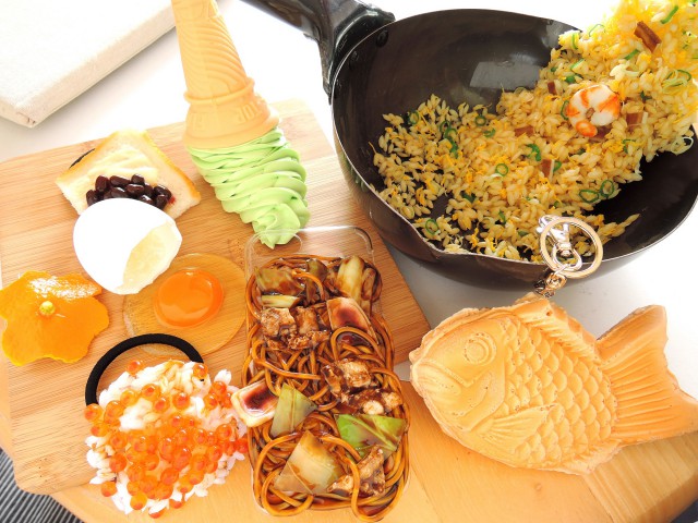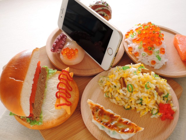 食品サンプルiPhone・名刺ケース、スマートフォンスタンドをはじめヘアアクセサリー、ピアス・イヤリング、キーホルダー・ブローチやまたリアルサイズのクリームソーダ・パフェ・ケーキ類など色々な種類、新しい使い方の食品サンプルになります。