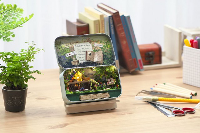 「ミニチュアット」シリーズは缶の中で組み立てるLEDライト付きミニチュアハウスキット、