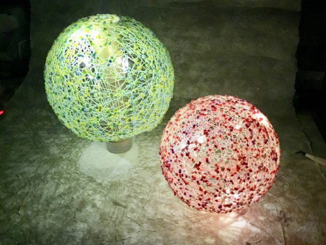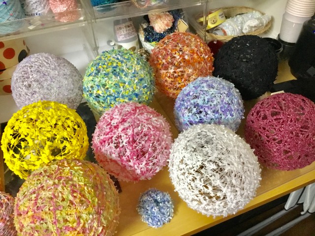 その、いおりの糸を使ってハンドメイドのシェードランプの製作品も展示を致します。