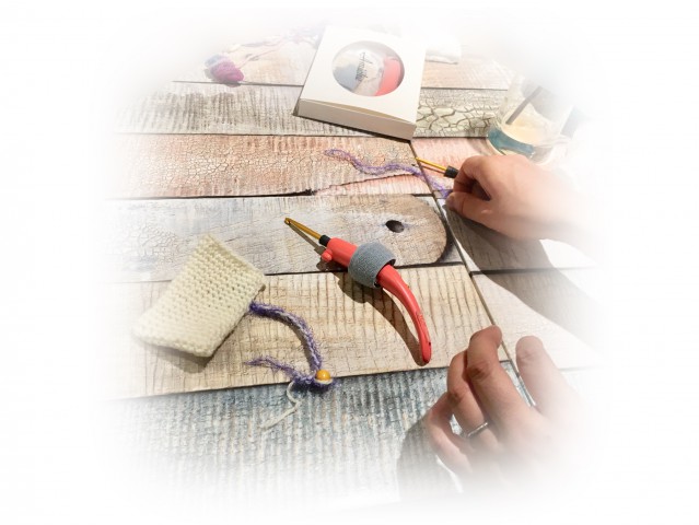 ・誰でも楽に編めるユニバーサルかぎ針《あみ〜ちぇ》の展示・デモンストレーションを行います。
