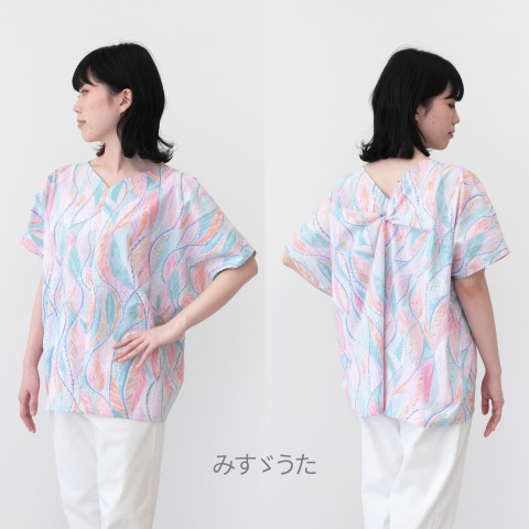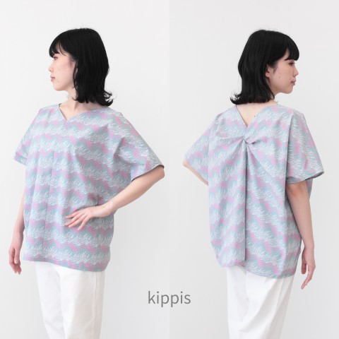 ねじりデザインで現れるドレープが柔らかなもう片面の