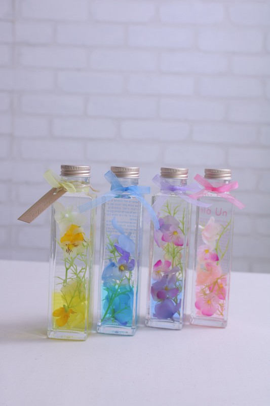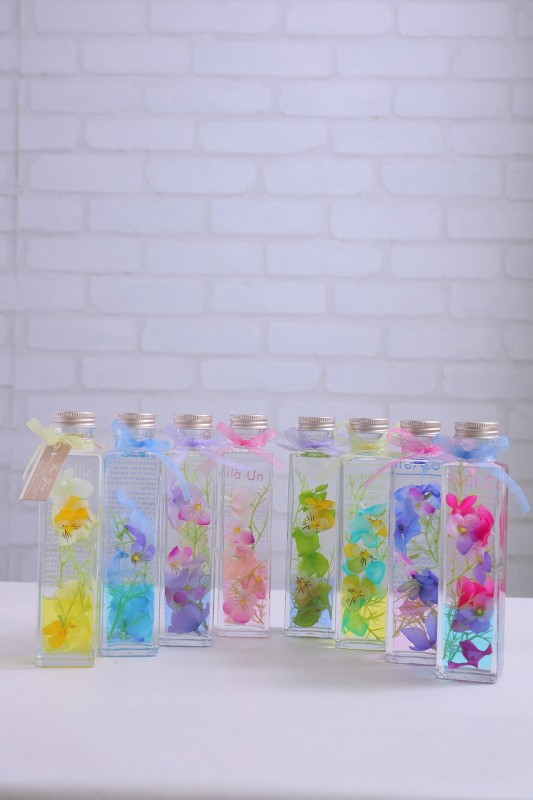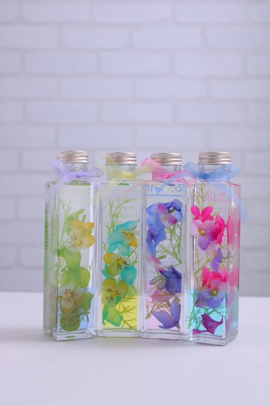 人気のハーバリウムをカラーオイルとアーティフィシャルフラワー(造花)で!