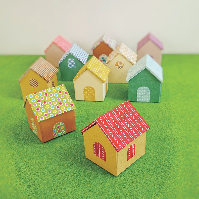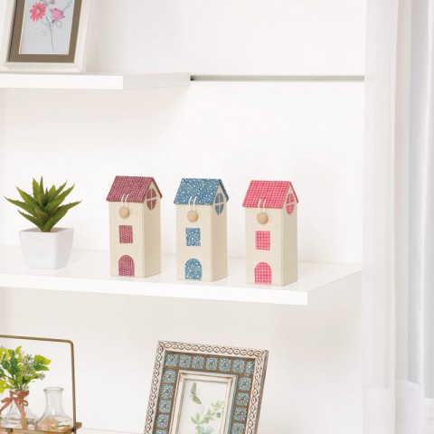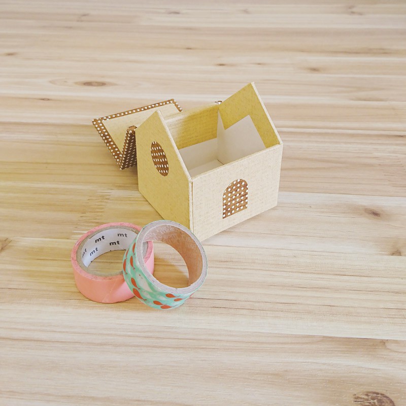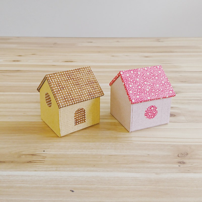 かわいらしいお家型の小箱。壁紙と屋根の組み合わせはいろいろ。