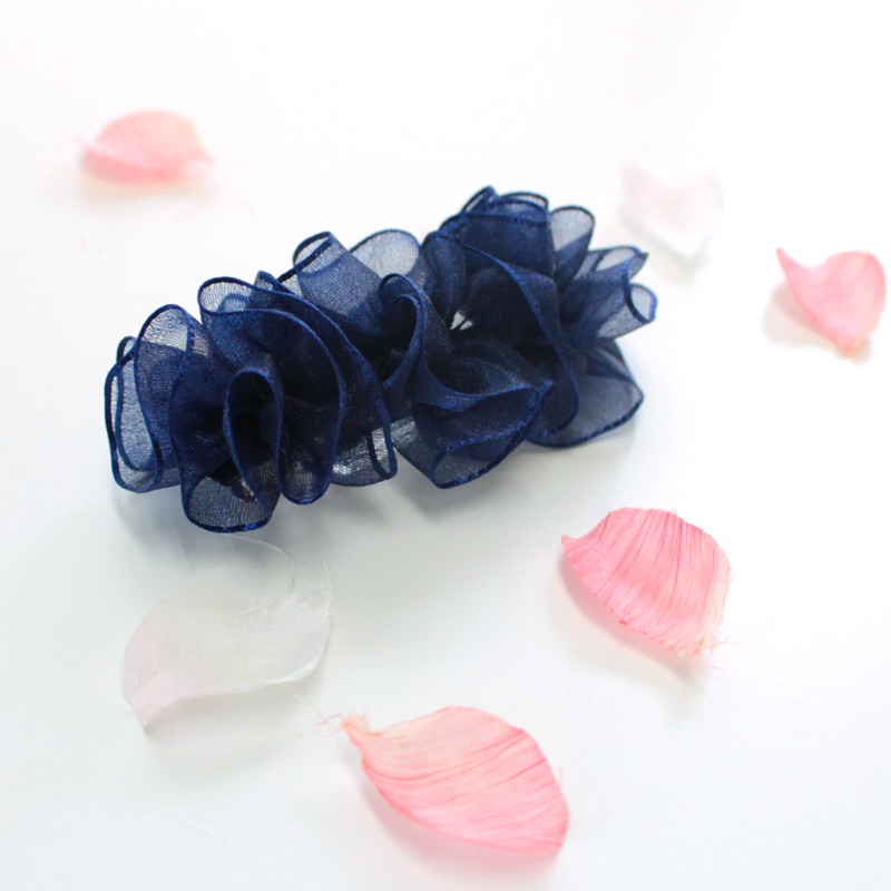 オーガンジーフラワーリボンを使い上品なバレッタを仕上げます!