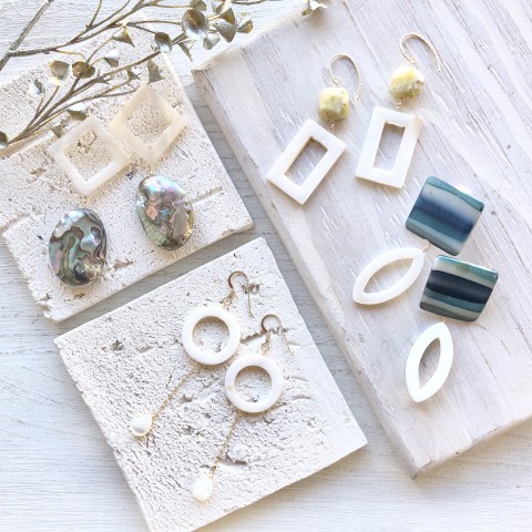 【夏にぴったりの素材を使用した大ぶりなパーツで作るピアス】