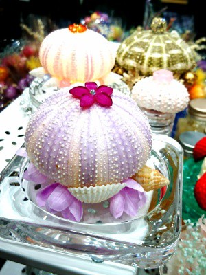 ③本物のウニの殻にLEDライトを入れて、デコ