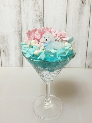 ①パフュームボトルのハーバリウム ②ジェルアートの小物入れ ③アーチンライト ④ジェルサンドアート