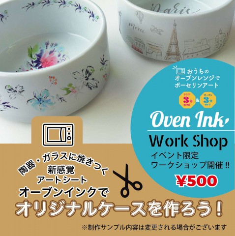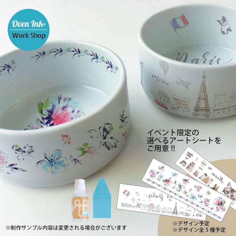 レンジ3分+オーブン3分の加熱で絵柄だけ焼きつく特殊素材の為、ワークショップ時間内にお持ち帰りいただくことが可能です。