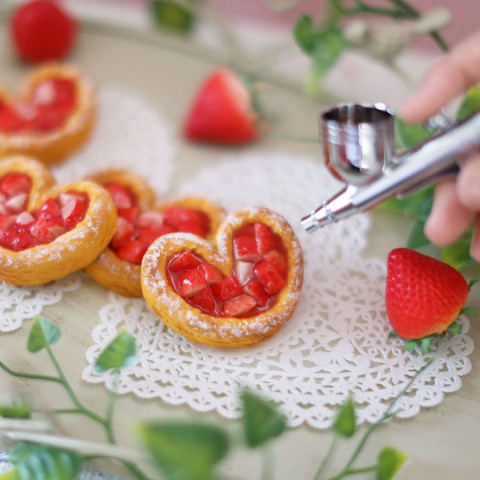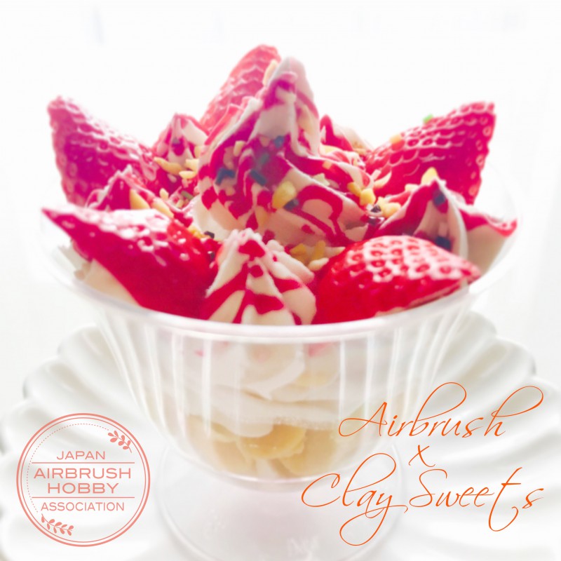 真っ白な粘土で作ったストロベリーに色づけして、ストロベリーパフェを作りましょう♪
