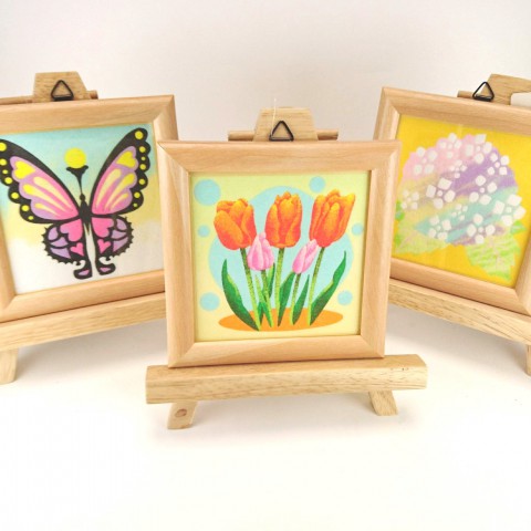 好きな色の色砂をのせていきオリジナルの作品を作ります。
